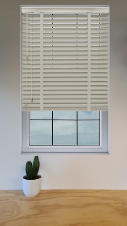 Deze aluminium jaloezie uit de serie Elegance in de kleur ivory heeft 50mm brede lamellen. Deze jaloezie heeft een zeer luxueuze uitstraling en zijn licht en onderhoudsarm. Onze aluminium jaloezieën zijn ook geschikt voor vochtige ruimtes. Gebruik de module hieronder om uw jaloezie op maat samen te stellen.