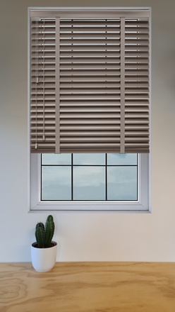 Deze aluminium jaloezie uit de serie Elegance in de kleur taupe heeft 50mm brede lamellen. Deze jaloezie heeft een zeer luxueuze uitstraling en zijn licht en onderhoudsarm. Onze aluminium jaloezieën zijn ook geschikt voor vochtige ruimtes. Gebruik de module hieronder om uw jaloezie op maat samen te stellen.