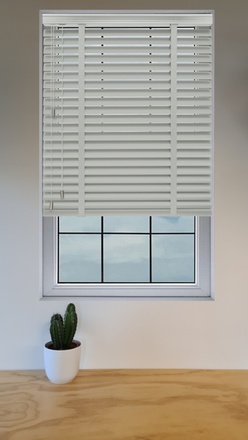 Deze aluminium jaloezie uit de serie Sunset in de kleur off-white matt heeft 50mm brede lamellen. Deze jaloezie heeft een zeer luxueuze uitstraling en zijn licht en onderhoudsarm. Onze aluminium jaloezieën zijn ook geschikt voor vochtige ruimtes. Gebruik de module hieronder om uw jaloezie op maat samen te stellen.