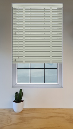 Deze aluminium jaloezie uit de serie Sunset in de kleur oyster heeft 50mm brede lamellen. Deze jaloezie heeft een zeer luxueuze uitstraling en zijn licht en onderhoudsarm. Onze aluminium jaloezieën zijn ook geschikt voor vochtige ruimtes. Gebruik de module hieronder om uw jaloezie op maat samen te stellen.