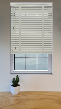 Deze aluminium jaloezie uit de serie Sunset in de kleur stone white heeft 50mm brede lamellen. Deze jaloezie heeft een zeer luxueuze uitstraling en zijn licht en onderhoudsarm. Onze aluminium jaloezieën zijn ook geschikt voor vochtige ruimtes. Gebruik de module hieronder om uw jaloezie op maat samen te stellen.