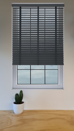 Deze houten jaloezie uit de serie Basswood in de kleur grey shadow heeft 50mm brede lamellen. Deze prachtige top kwaliteit jaloezie is goed bestand tegen zonlicht en vocht en verkleurt dus niet en trekt ook niet krom. Gebruik de module hieronder om uw jaloezie op maat samen te stellen.